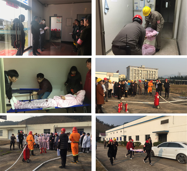為增強(qiáng)我公司員工消防安全意識(shí)及逃生自救能力,1月30日,組織開展了一場(chǎng)消防疏散、傷員自救及現(xiàn)場(chǎng)滅火演習(xí),公司全體員工參加演練,并邀請(qǐng)安全技術(shù)服務(wù)公司講解消防知識(shí)。下午14:00點(diǎn),消防演習(xí)正式開始,火災(zāi)警報(bào)鈴聲響起,全體人員通過消防通道按照指定的疏散線路,有序地進(jìn)行緊急疏散,并第一時(shí)間撤離到安全地帶(辦公樓大門口前空?qǐng)觯⒛M現(xiàn)場(chǎng)傷員自救。安全員穿好消防服,帶上滅火器材,及時(shí)對(duì)模擬著火點(diǎn)進(jìn)行處置。
